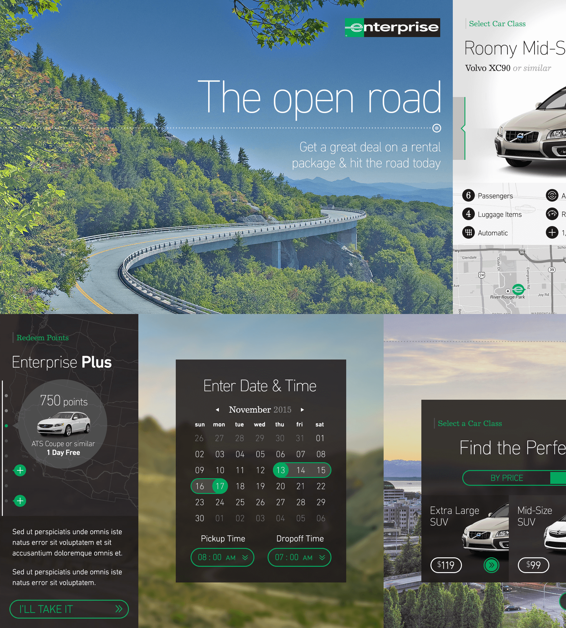 I like the look of this Enterprise moodboard I worked on, which took the form of a poster-like layout highlighting a "look-and-feel" suggestion as well as proposed layout elements.